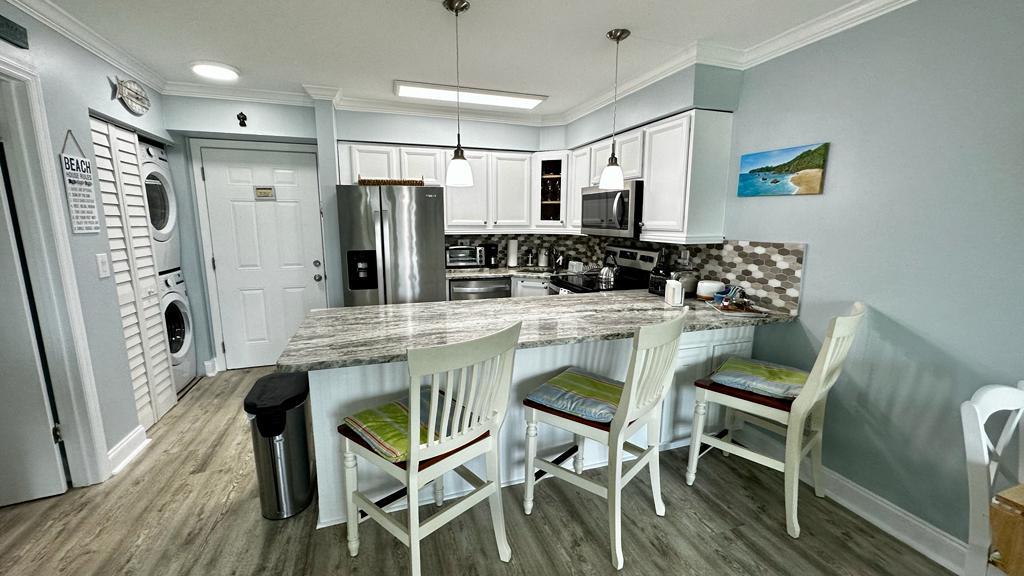 Forget your worries in this spacious and serene beach condo. Newly renovated ground level unit with a peaceful patio overlooking the pond. The condo has one bedroom with a king bed and a spacious living room that has a pull-out Queen Murphy bed. A short 5-minute walk to the private beach makes it easy to enjoy the sands of South Hutchinson. Ocean Village offers a multitude of amenities such as a 9 Hole Golf Course, Tennis Courts, Shuffleboard, Bocce Ball and more! STR #23-00034783