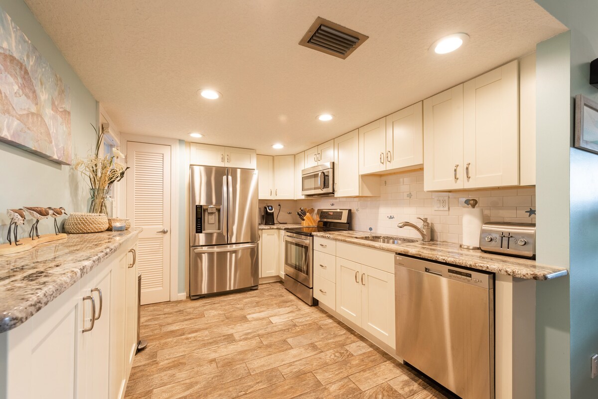 Welcome to South Hutchinson Island, Florida! Enjoy fishing, surfing, beaches, historic downtown, and a farmers' market. After a day of fun, relax in our luxurious vacation rental with AC, a shower with great water pressure, and a king-sized bed. Gather on our large sectional sofa and watch a movie on the 70" smart TV. Cook at home or try nearby restaurants. Located in a friendly neighborhood on the Treasure Coast.
