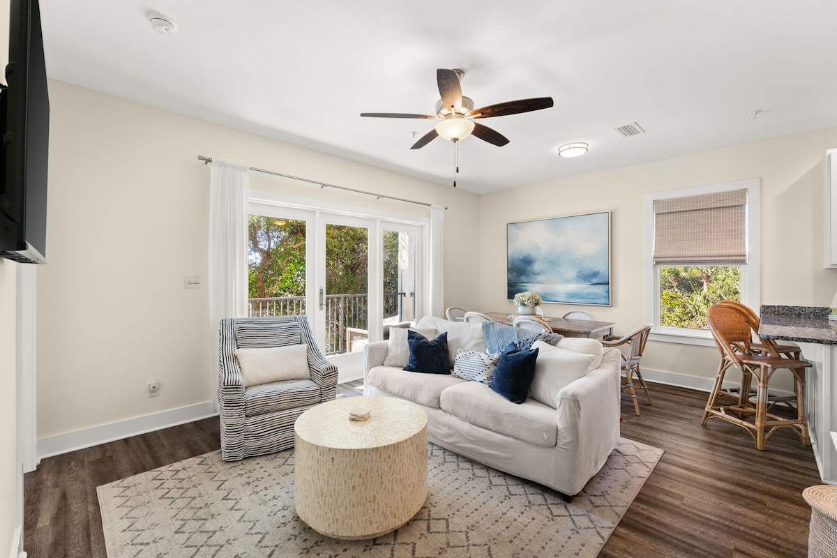 - One block from the Crystal Beach area of Destin - 0.6 miles to Destin Commons w/ Whole Foods and shopping - 1.0 mile to Publix - This is the UPSTAIRS UNIT (downstairs rents separately through same host.) Each unit is fully separate. The Destin Doublemint, a bright and airy one-bedroom cottage, is the perfect spot for your beach vacation. It's less than a 2-minute walk to the sand, making it easy to pop back for a dip in the pool or a movie in the AC before walking back over for sunset.