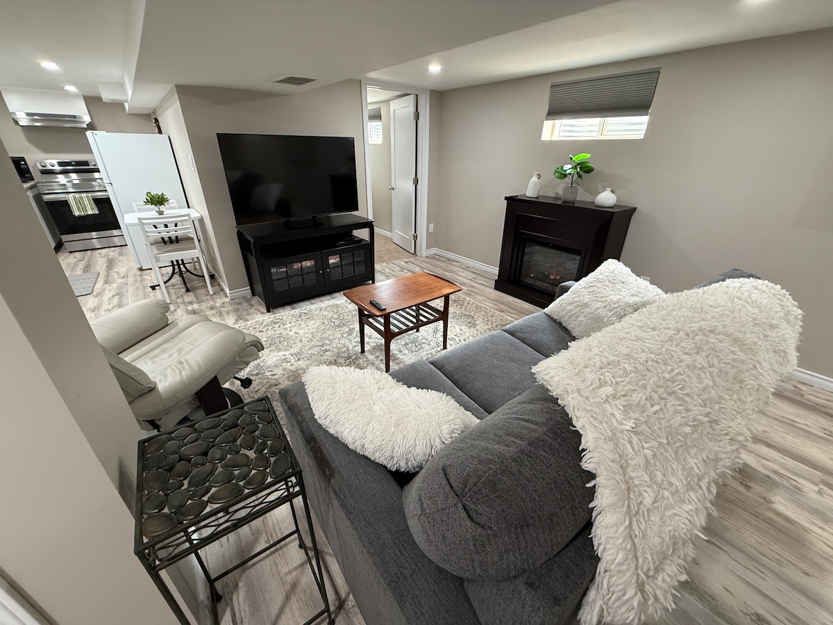 Welcome ! Beautiful, newly furnished in our lower level. There is a private bedroom ,complete with Memory Foam Pillows ! A twin bed in main space ! All beds have 100% cotton sheets! Equipped with a keurig, kettle, microwave, toaster & bar fridge. Coffee and tea , coffee mate and sugar, glasses, coffee mugs and plates , bowls, cutlery and napkins. Free street parking! Cable TV .... 9 mins from the airport! Photo ID may be requested on checkin... 5% Municipal Accommodation Tax is included !