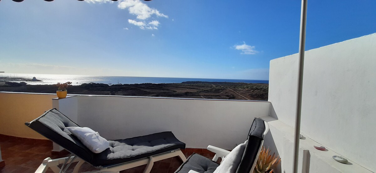Penthouse with great sea view and large terrace where you can enjoy evenings outdoors. A 5-minute walk away is Los Enojados and Las Galletas beach where you will find many restaurants, entertainment venues, shops, a pharmacy, a pleasant promenade. Surfing area. Boat trips where you can see dolphins, turtles, whales. Rent jet skis. Disconnect from the routine in this unique and relaxing accommodation.