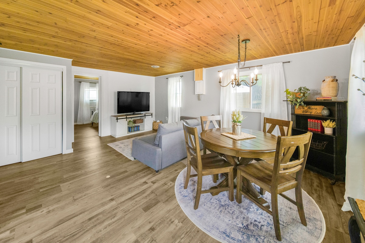 This just renovated, cute and cozy home has 3 bedrooms with a queen size bed and television in each. The excellent WiFi allows for Netflix to stream on the bedroom as well as living room TV's while still allowing you to use the guest network for your laptop and/or phone. Being just outside town allows for a peaceful getaway from all the fun and allows you to catch your breath and recharge. You'll find everything you need to enjoy a meal or just kick back and relax.