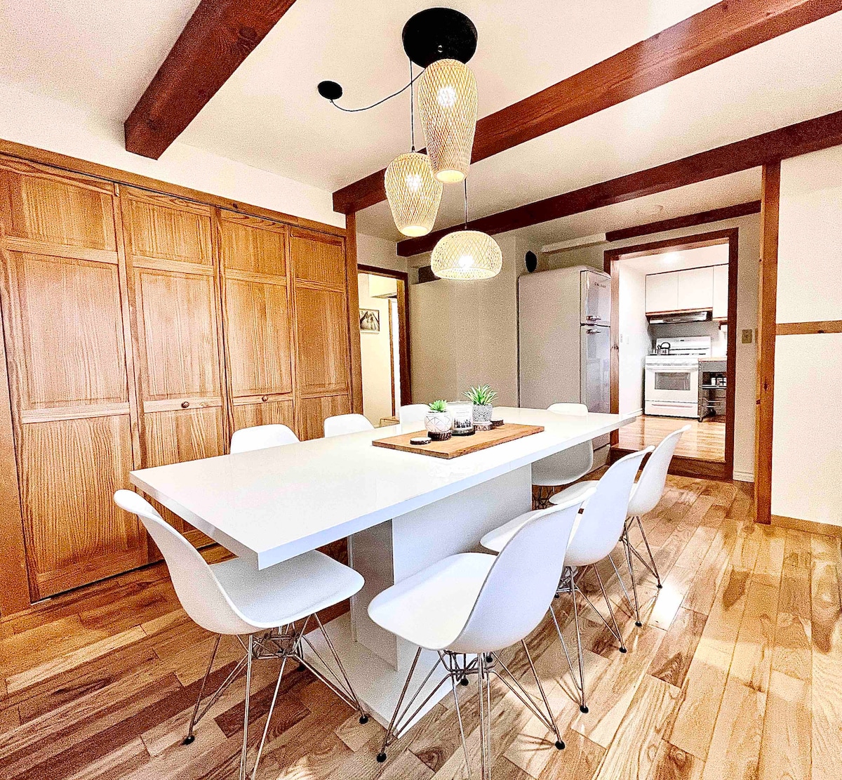 Discover the beauty of the Green Mountains during your stay at our authentic log cabin Chalet. Located only minutes from Jay Peak our chalet boasts 3 bedrooms, including 1 with a king-sized bed, 1 with a queen-sized bed, and another with 2 twin beds. Additionally, there are 2 full baths, along with 2 sleeper sofas in the living room, providing accommodation for up to 8 adults. Immerse yourself in the serenity of nature on our expansive 14 acre wooded property that you will have all to yourself!