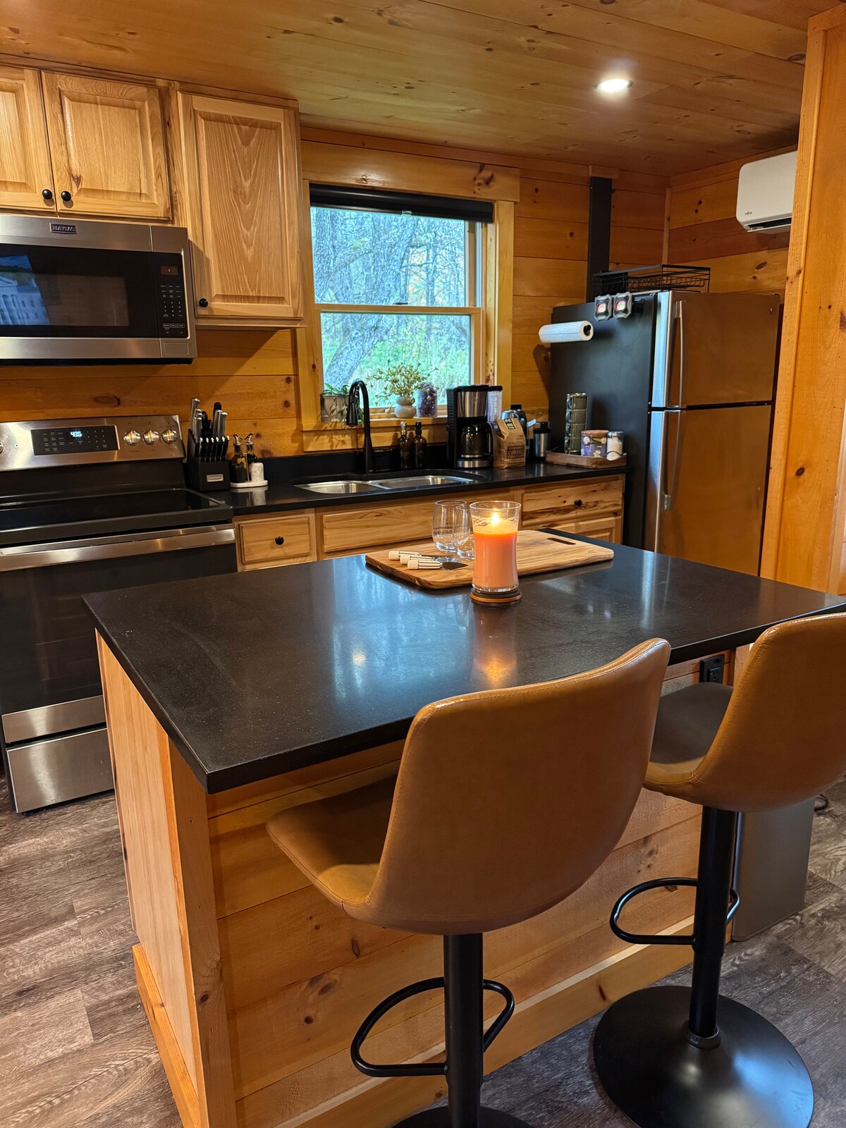 Welcome to Winter’s Retreat! Relax on 32 acres of the Vermont Green Mountains, about 20 minutes from the Jay Peak ski resort. Enjoy walking on a logging trail winding through the property and relax on Adirondack chairs surrounding a fire pit that overlooks a Jay Peak landscape. For EV owners a level 2 charger is on site and provided free of charge! The cabin sleeps four with a pullout sofa bed, features a full kitchen, wifi, washer/dryer, TV, full bathroom, and desk space for remote working.