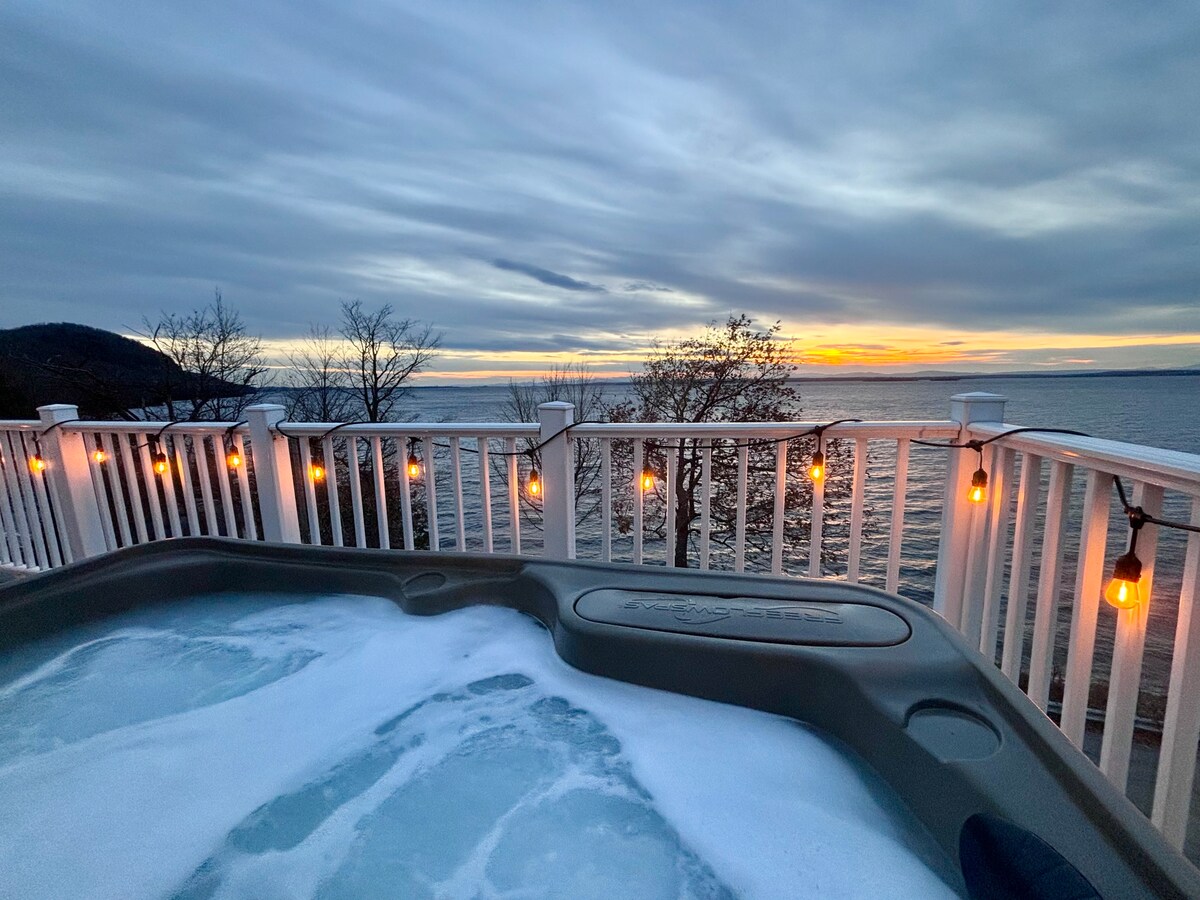 When you turn into the driveway, you'll know you are somewhere special. The shimmering waters of Lake Champlain, which can be seen from all three stories of this home, beckon you to enter via the private beach. There are three bedrooms, three bathrooms, two sumptuous living rooms, a well-equipped kitchen, and a deck. There is even a hazelett mooring for your boat. The balcony has a hot tub that is perfectly positioned to watch sunsets. This is the Vermont vacation home for all seasons.