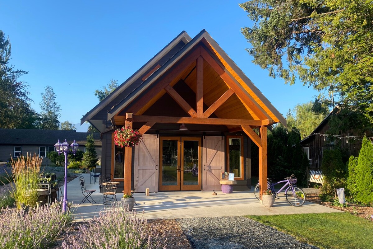 Escape to the countryside in the charming farmhouse at Tuscan Farm Gardens. Explore our flower gardens and lavender rows, read by the fire, cook in the farm kitchen of your dreams, or enjoy a soak in the claw-foot tub with our handmade botanical spa products. There's a private study for work and a covered garden patio for relaxing. You'll love being surrounded by nature on this stunning property featured in many films. Located in beautiful Mt Lehman, less than an hour from Vancouver.