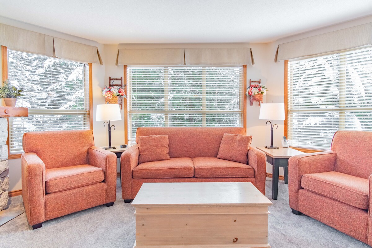 An ideal home-away-from-home for a family mountain vacation, this spacious 3BR, 2BA (sleeps 7) Whistler condo has room for everybody. One of the the few true ski in/ski out locations with the added bonus of a pool. Views to the pool allows you to keep an eye of the kids too! Surrounded by nature with amazing mountain views!