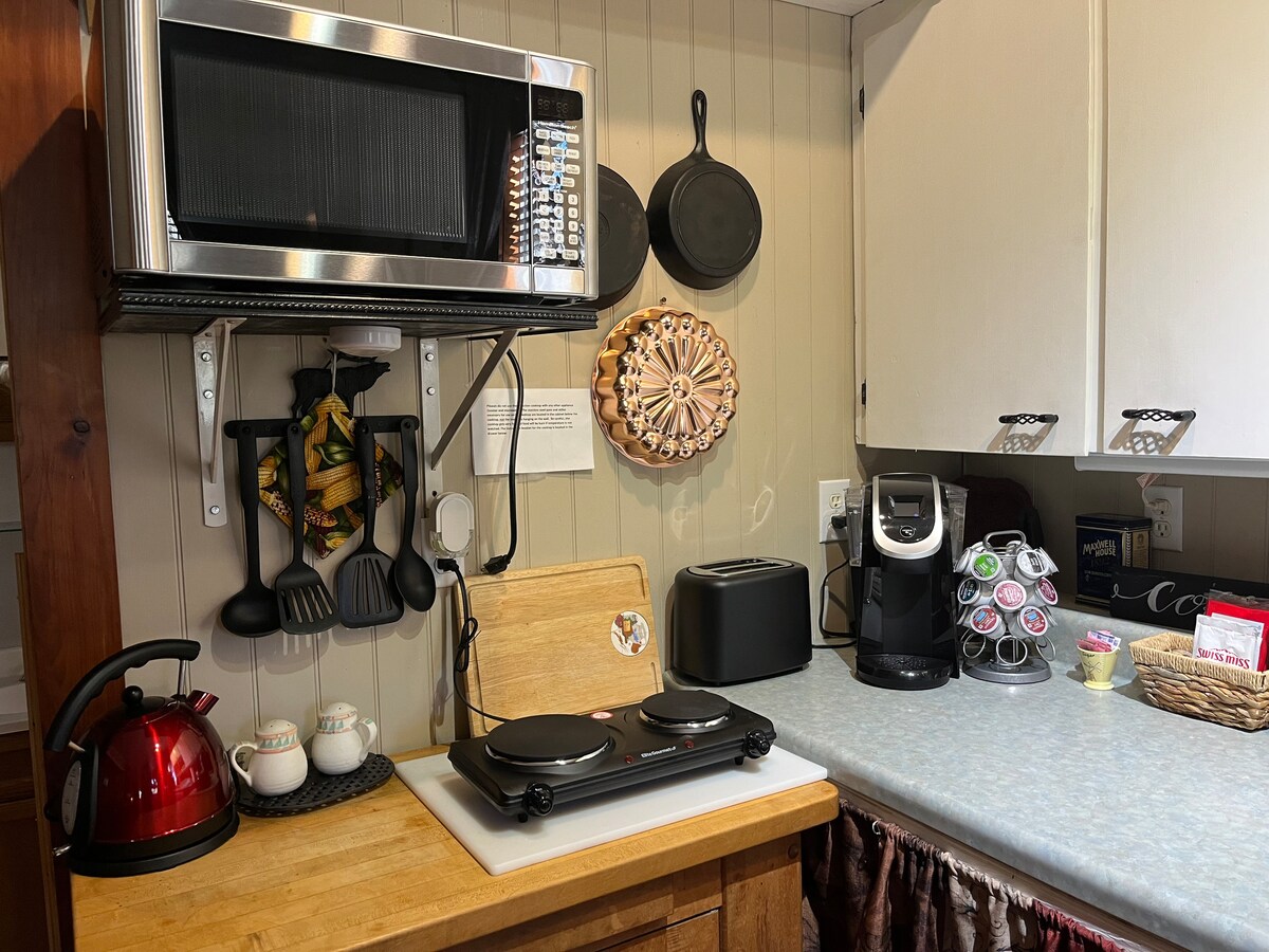 Come visit Above the Clouds! You're at 3200 feet on 9 private acres, with amazing views of our beautiful Western NC mountains. Everything you need is in your separate and private 650 sqft floor, which is the lower level of our home on top of the mountain. We're in the middle of nature, so be prepared to share space with deer, bear, coyotes, fireflies, and lady bugs. Mini-Frig, Microwave, Keurig coffee with coffee supplies.