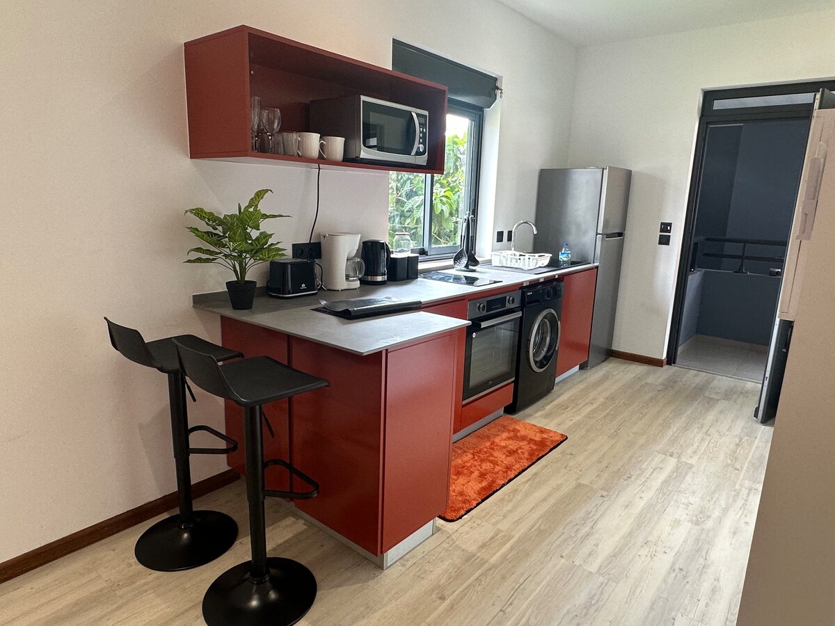 Logement idéal pour tous vos séjours: de loisir ou professionnel ! Il est situé à proximité de toutes les commodités nécessaires ! Cette villa offre : - Une chambre avec lit double, climatisation, télévision, penderie, salle de bain - Salon-salle à manger avec canapé-lit, climatisation, télévision - Cuisine équipée avec machine à café, bouilloire, grille pain, four, réfrigérateur, micro-ondes … et lave linge - Piscine privée avec mobilier - Cuisine extérieure avec barbecue - Parking privé