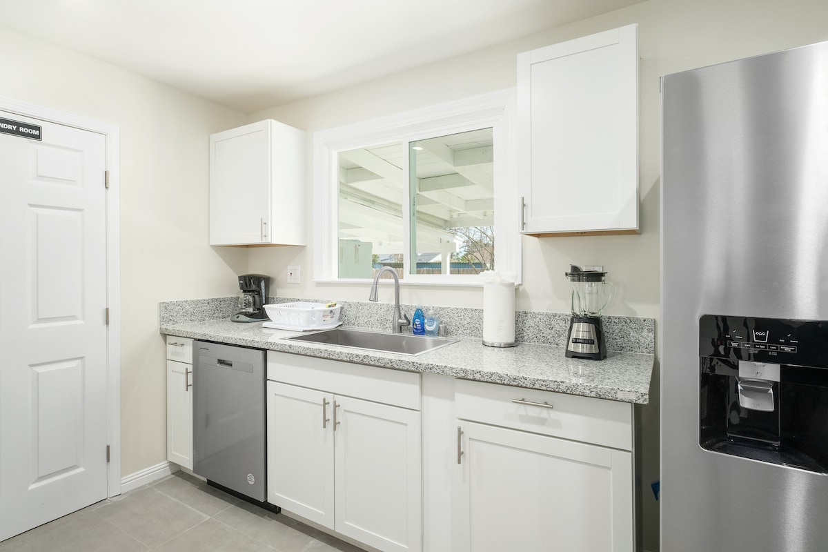 Upgraded 3bed/2bth with all new appliances and furniture, in a quiet, safe residential area 3 min off R99, 15 min to airport, great access to national parks (Yosemite, Sequoia, Kings Canyon), high speed Wi-Fi dining table, TVs in living and bedrooms, BBQ grill, all kitchen essentials including blender, coffee maker. 3 queen beds and 1 queen sofa bed. Front and backyard securely fenced, parking 2 cars inside the security gate, street parking available as well, great for both business and fun.