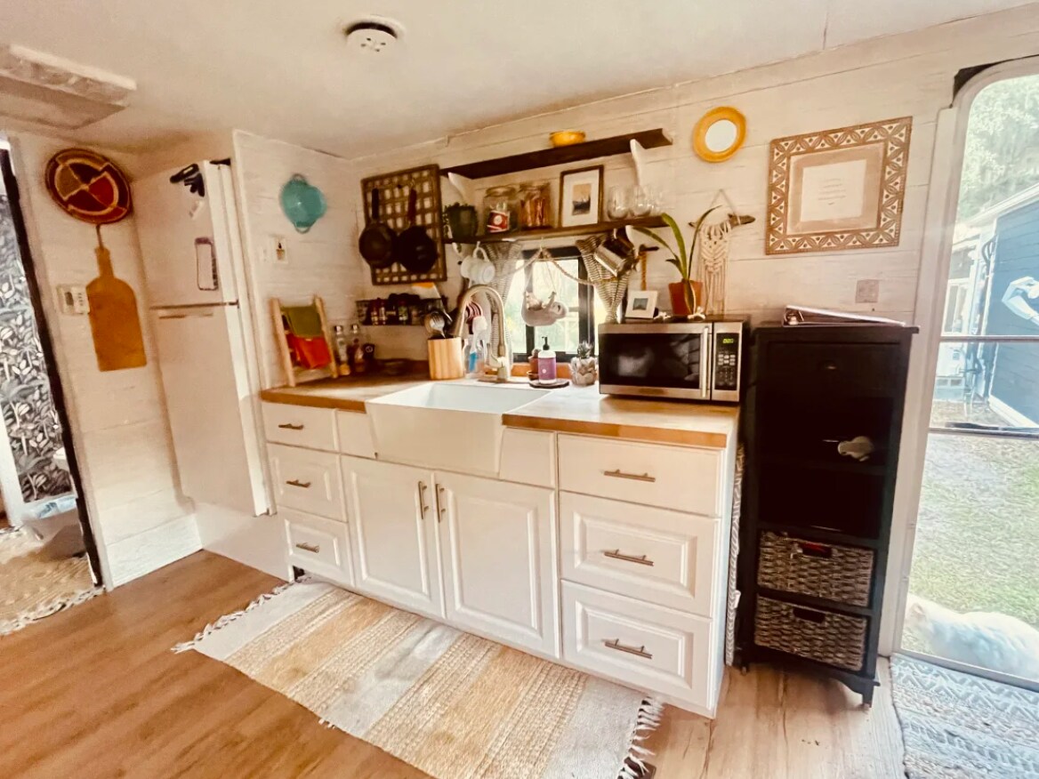 Recently featured on Tiny House Talk website. Think of waking to a breath-taking sunrise, birds chirping, and a soothing breeze off of the marsh, or the idea of watching the tide come and go. A nice 320sq ft. heated/cool space, with a million dollar view! State park beach pass included, Wifi, and Satellite tv. * Remember the other bed is a twin bed for a toddler* (Secluded property)