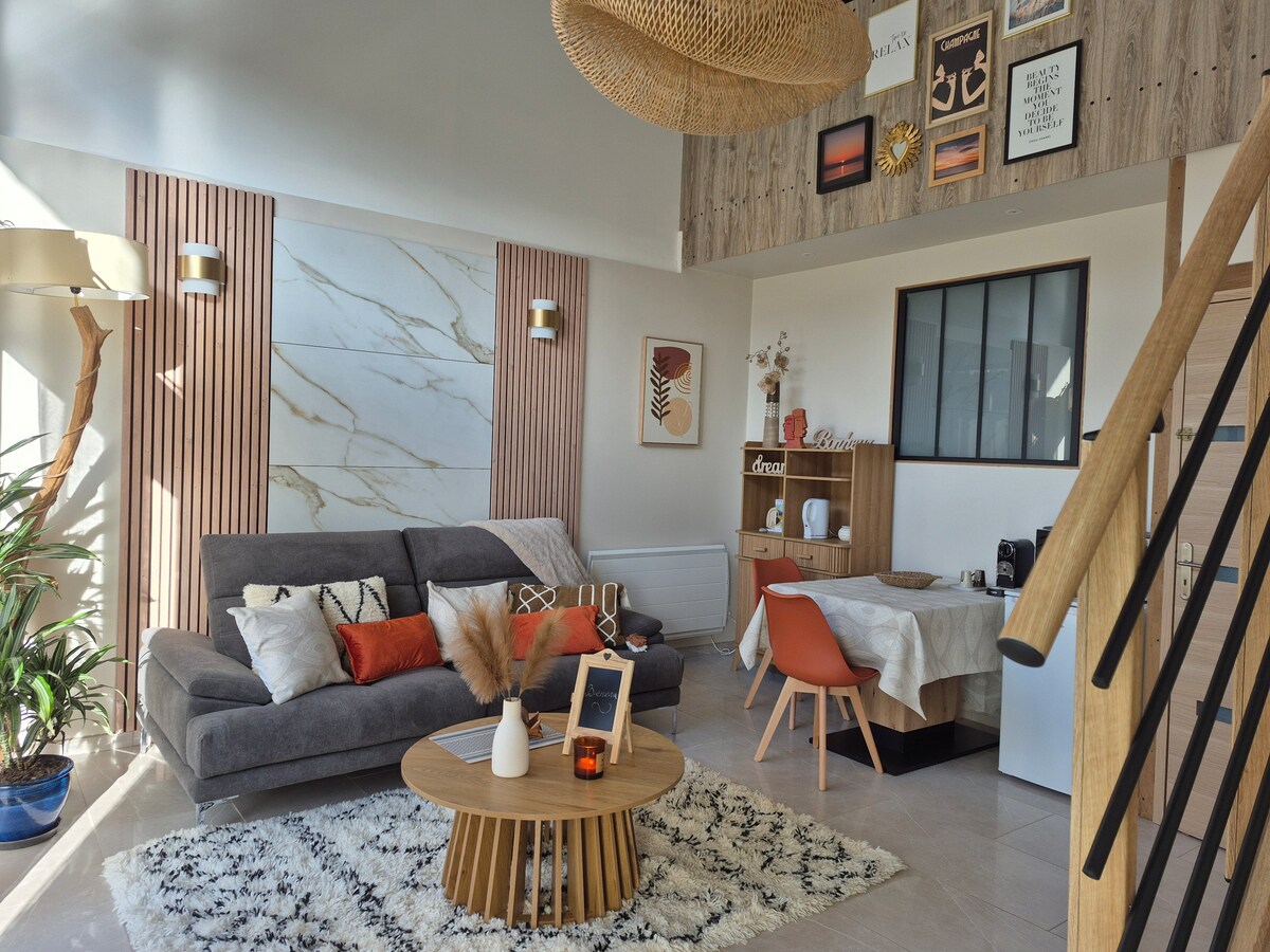 ✨ The Elegant Getaway – Large 120 m² Loft with private terrace, close to Lac du Der. Stay in Wassy, in a spacious and modern loft that can accommodate up to 8 people. Enjoy a great location: 🚤 20 minutes from Lac du Der and its nautical activities, 🎢 45 minutes from Nigloland, 🍇 on the Champagne route and half-timbered churches, 📍only 2.5 hours from Paris, 1.5 hours from Reims and 1.10 hours from Troyes. This is the perfect place for a stay with family, friends or for work.