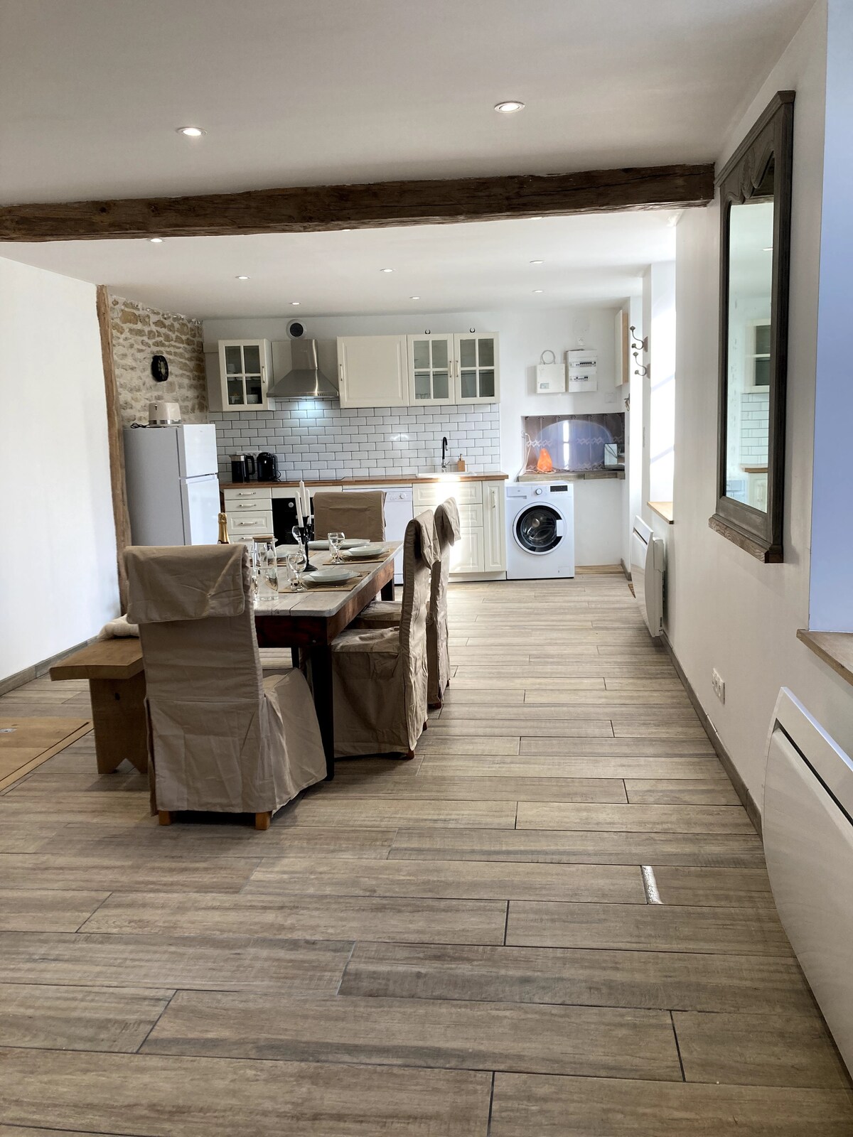 "La Maison d'à côté", a small country house, refurbished, welcomes you for a work stay or a family stay. Located in a village of 1200 inhabitants, 10 km from Langres and 1 km from the LANGRES-NORD motorway exit, junction of the A5 and A31 motorways. In the center of the village, you will have access to essential shops: Bakery, pharmacy, supermarket (open every day), doctor, nurses, garages, bar-restaurant, food truck. No parking worries.
