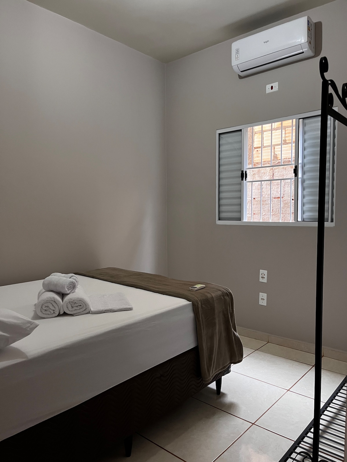 Morada do Bosque is a cozy and airy space, with two bedrooms — one with a double bed and air-conditioning, and the other with two single beds and a ceiling fan. The living room has a TV, ceiling fan and sofa bed. The kitchen is equipped with a water purifier, refrigerator, stove and basic utensils. There is a garage for 2 cars (uncovered) and a large balcony with a backyard. Located in a quiet neighborhood, close to the avenue, supermarket, bars and cafeteria. Bed linen is included.