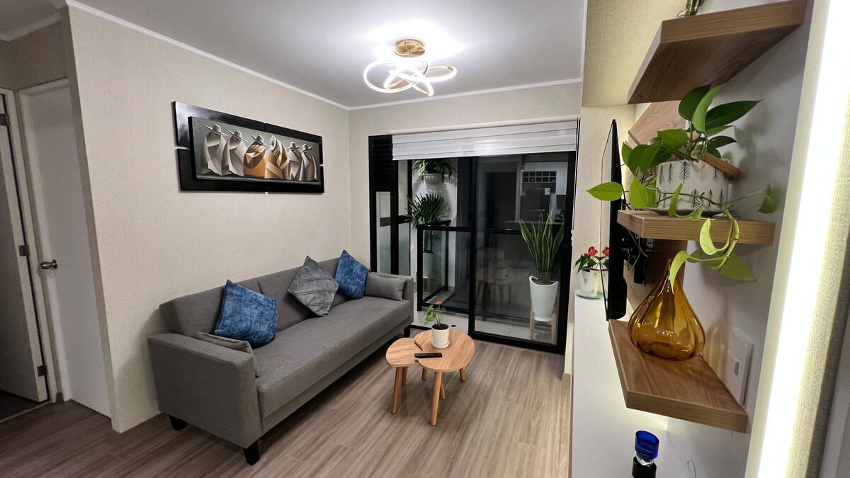 ✨ Open a modern and cozy apartment on the 21st floor overlooking the city. Ideal for couples or travelers, the apartment is private, not shared. Queen size bed, modern bathroom, 58" TV in the living room and 43" in the bedroom, equipped kitchen and board games. One block from Cáceres Park, near Campo de Marte. 15 minutes from downtown, very close to a market and the Church of Jesús María and 4 km from La Pera Park!