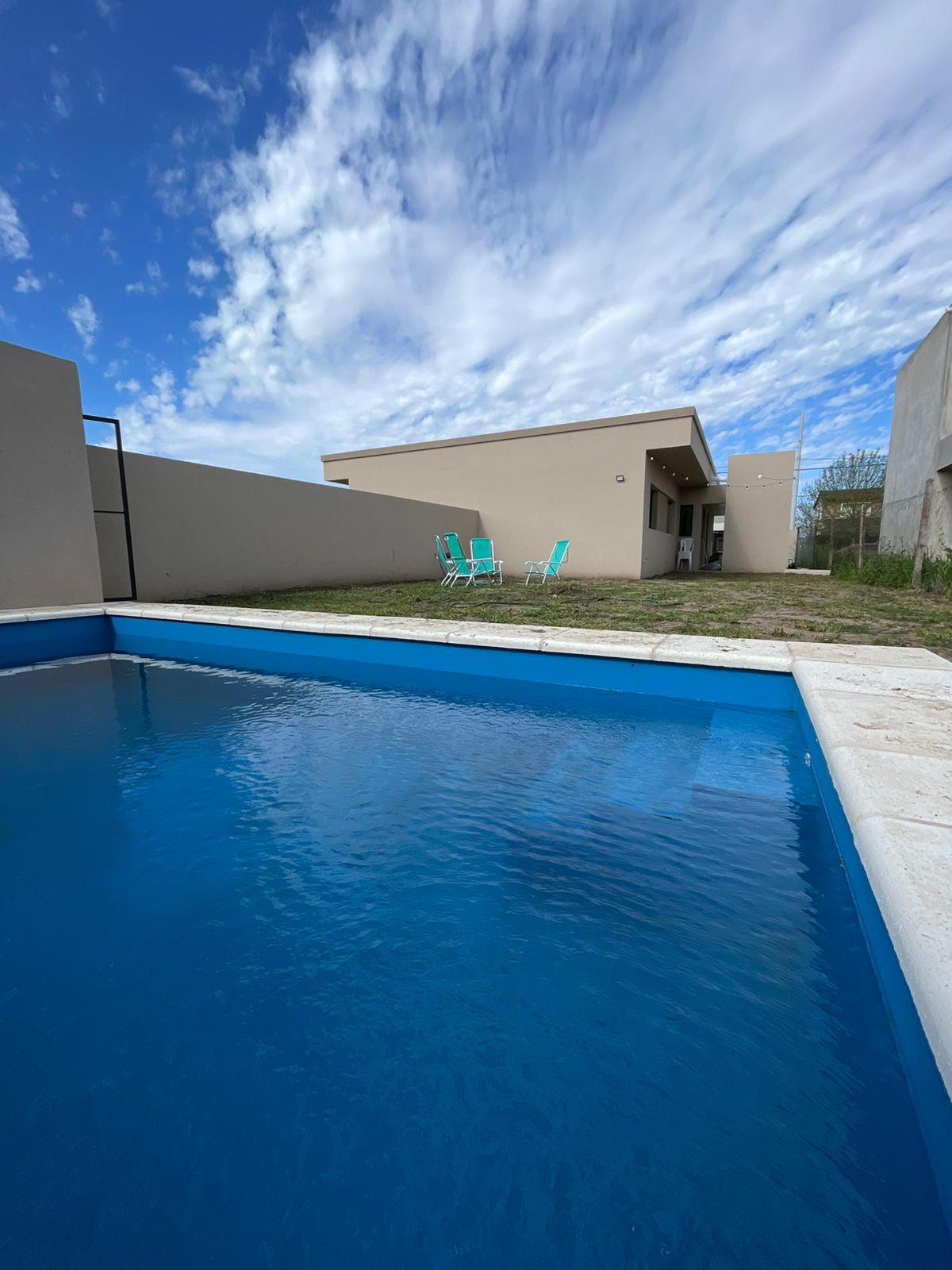 Located in a gated community - Estancia La Rinconada. Comfortable, spacious and bright house. Private pool. Grill and covered gallery. Covered garage for two vehicles. Wifi. Equipped kitchen. All rooms have air-conditioning and heating and a fan. 3 bedrooms. One on the ground floor with an en-suite bathroom. Ideal for relaxing, for golf groups and/or families. 24-hour security. Private alarm. 10 minutes from Rosario. No parties allowed.