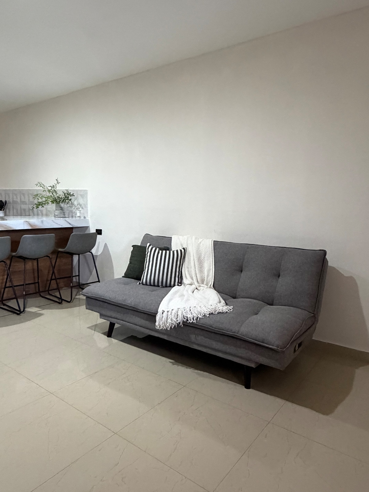 This elegant apartment is inside a spacious and modern house, it is ideal for family trips, events and business, it is located on the second floor, it includes: - King size bed (2 people) - Sofa bed 1 - Exclusive bathroom - Kitchenette - Coffee maker, microwave (supplies) -Smart TV - desk - A luggage rack - A dining room. GROUND FLOOR: - Lobby (common area) - Patio and garden - An event room (by reservation) - Parking (request availability) SECOND FLOOR: - Lobby - Kitchen - A laundry and ironing room
