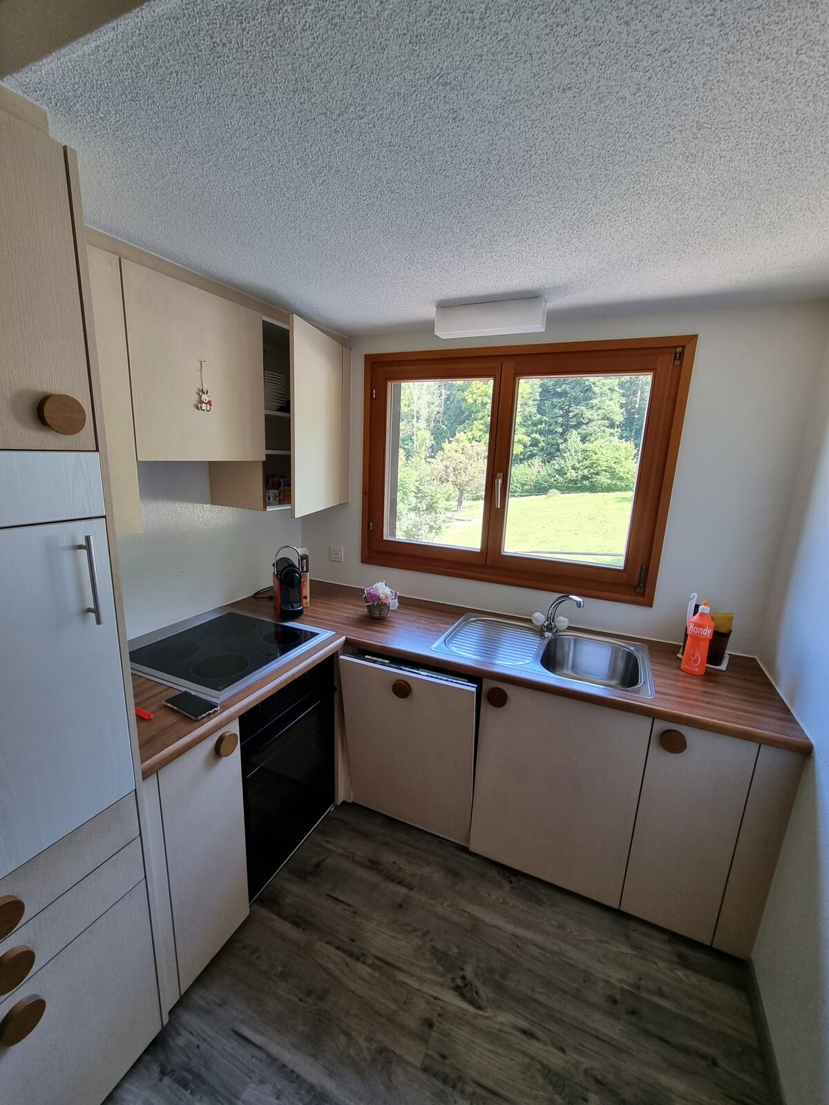 The cozy chalet in the spa resort of Wienacht-Tobel, high above Lake Constance, invites you to relax and unwind. It's situated in a peaceful setting and offers a breathtaking view of the lake. The region is a paradise for nature and sports enthusiasts: numerous hiking, cycling, and swimming opportunities await, as well as nearby ski lifts and toboggan runs. In the neighboring towns of Rorschach, Heiden, and St. Gallen, you'll find a variety of shopping options and restaurants to suit all tastes.