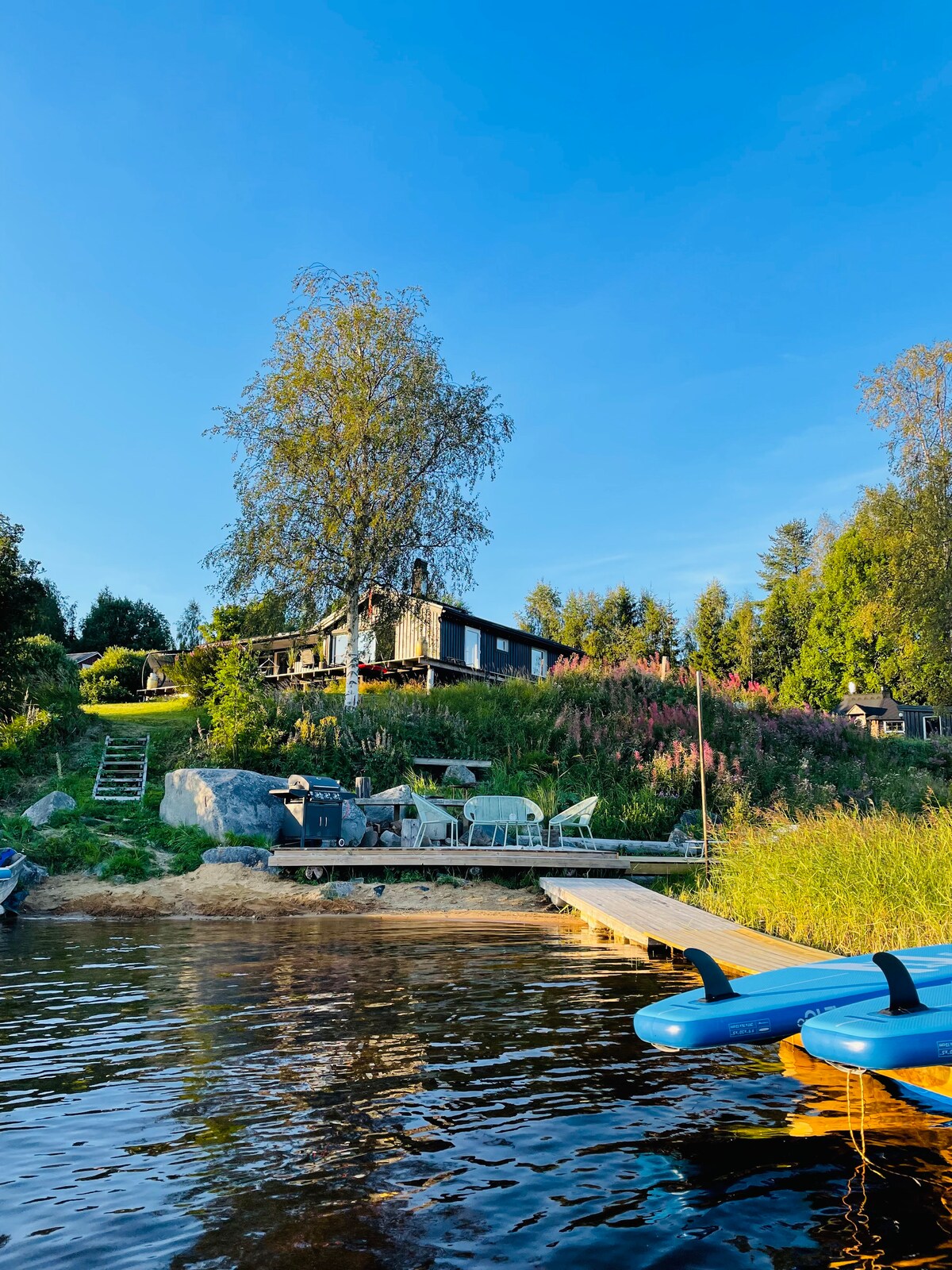 House with magnificent lake view, sauna and jetty