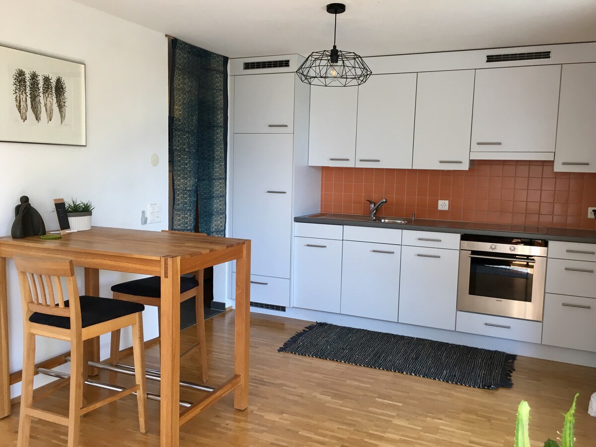 Complete privacy offered & you will feel right at home in this cosy, modern studio apartment, ideal for business guests or for those just wanting to explore Liechtenstein. The apartment has everything you need to make your stay enjoyable, including a fully equipped kitchen, coffee machine with free coffee, unlimited wifi, and two private sunny terraces with deck chairs. Washing facilities available.