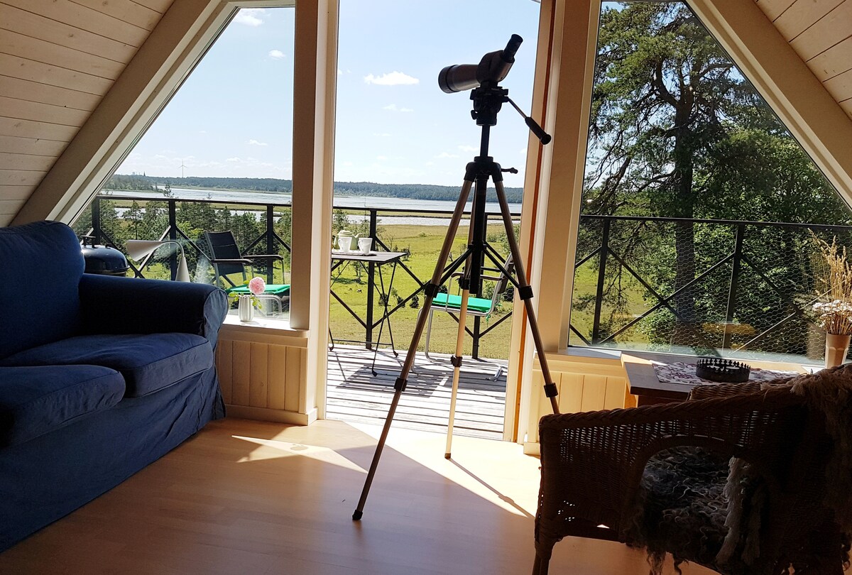 Welcome to charming studio, 38 m2 with beautiful lake view from the balcony. Rich bird life, foxes and deer can be seen with the binoculars. Take the bikes down to the harbor. Enjoy our wood-fired sauna and fall asleep in the beautiful bed. We offer fresh air, silence, quiet and good, clean drinking water from the tap. Excellent cycling/hiking trails in beautiful nature and cultural landscapes with medieval buildings. 50 km to Visby. 13 km to Fårösund. 5 km to bus stop. Car charger is available. You take care of the cleaning yourself.