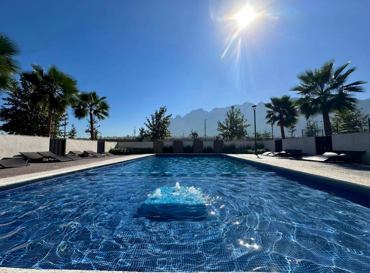 !La mejor ubicación y vistas 360 de Monterrey! Penthouse totalmente remodelado con acabados de lujo y sistema Alexa. 2 pantallas de 65’’ y 50" c/ Firestick (canales & eventos). Ubicado en zona de fácil acceso y con seguridad. Penthouse de 2 pisos: Parte baja: cocina, comedor, área social con sofa-cama; mesa de ónix; chimenea, congelador, baño completo, TV & Terraza (sillones) Parte alta: Recámara, cama queen, TV, frigobar y escritorio Alberca, GYM y Sala de reuniones