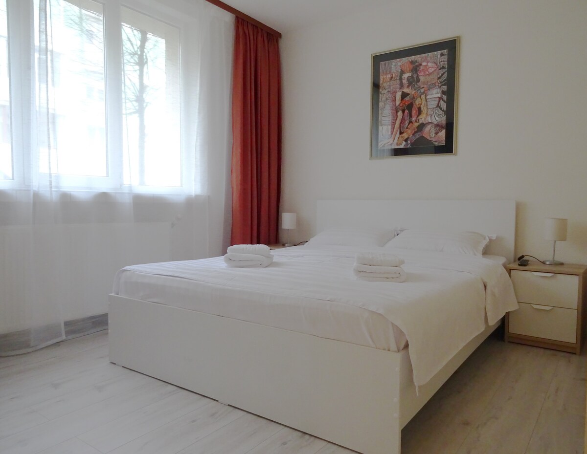 Self-service, fully equipped kitchen. Free coffee, tea. Free Wi-Fi. Bathroom with bathtub, free toiletries, flat screen TV, free parking. Coffee maker, toaster, hair dryer, iron and ironing board. 1 double bed in the bedroom plus a sofa bed in the living room. Bed linen and towels. The apartment is close to the city center and hospital, Lidl, Kaufland, Pepco, non-stop shop, self-service in the immediate vicinity. Free parking. Parties are forbidden.