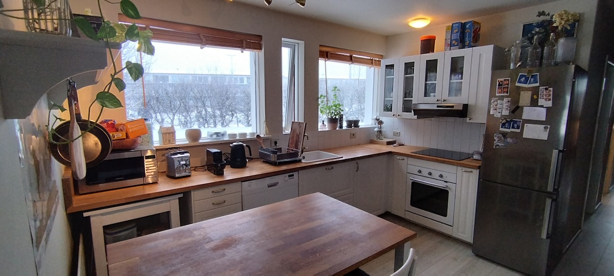 Icelandic home with free parking and bus stop