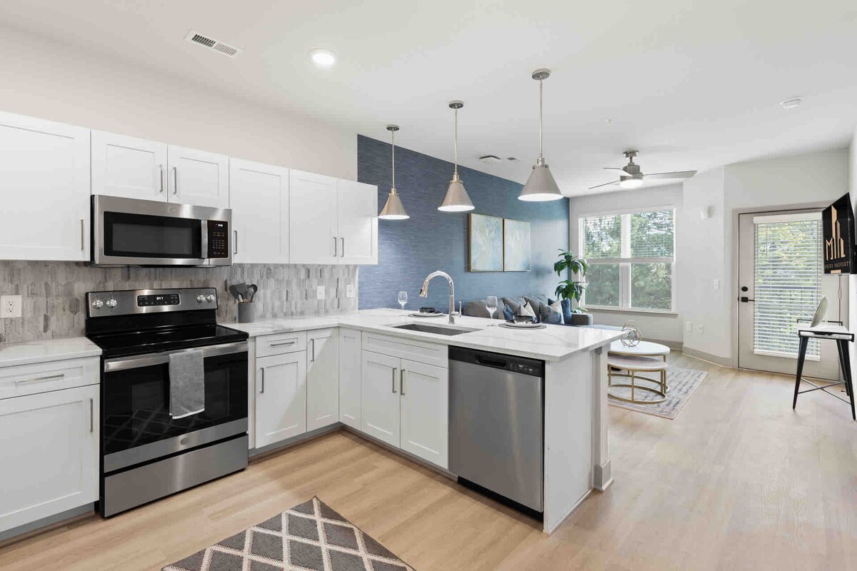 Unwind in this stylish luxury corporate one-bedroom apt. Near Hospitals and Downtown Raleigh. Full of top restaurants, movie theater, spas, shops, historic landmarks, and attractions. Adventure through Raleigh and the region easily from this prime location. Relax indoors amongst designer furnishings, flat-screen TV, and luxe amenities. ✔ Fully Equipped Kitchen ✔ Comfortable Bedroom w/ Queen Bed ✔ Open Concept Living Area ✔ Office Desk ✔ High-Speed Wi-Fi ✔ Free Parking Learn more below!