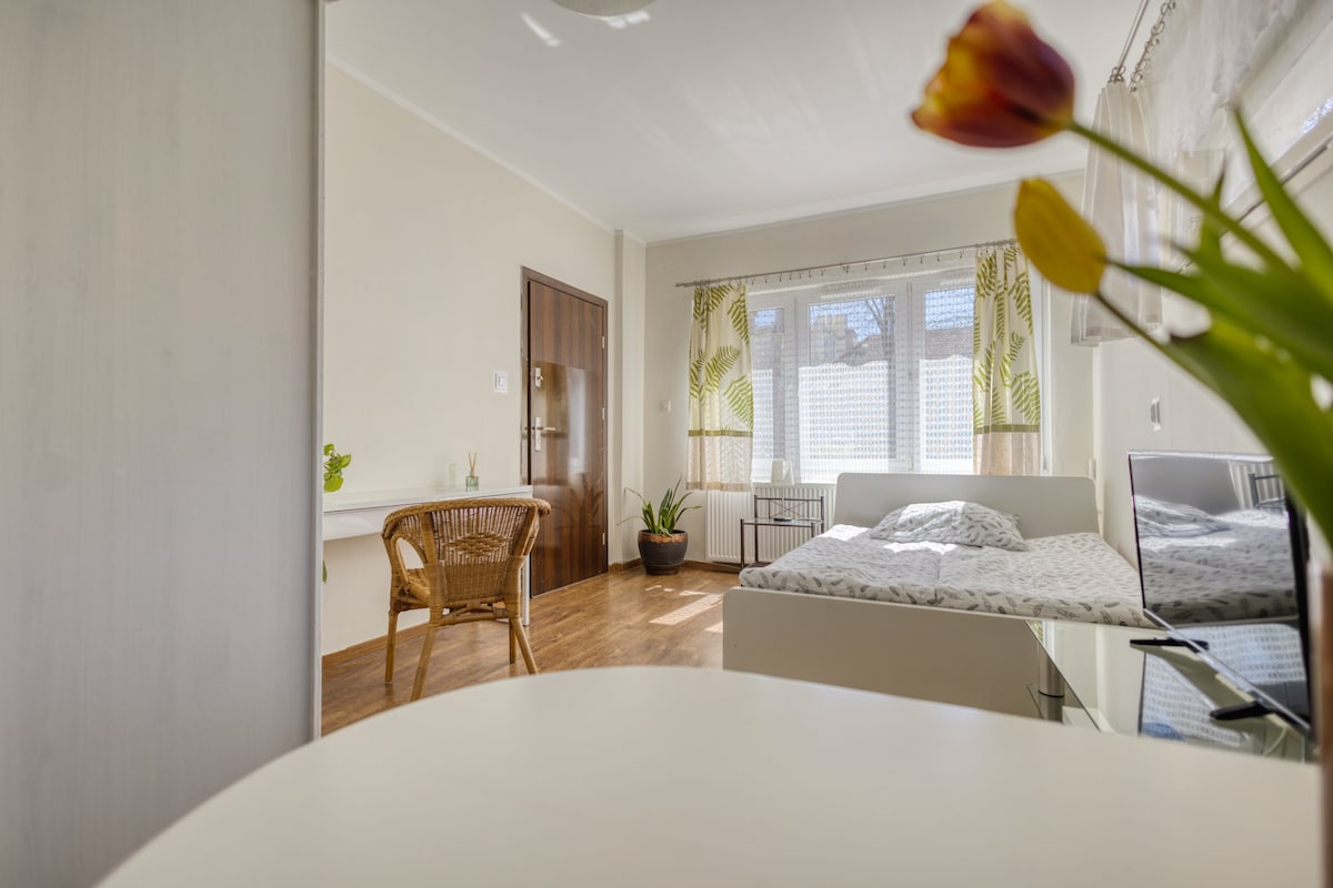 Studio Zacisze is located in Villa Sopot, located 7-10 minutes on foot from the center of Sopot or Monte Cassino, to the SKM/PKP station is 7 minutes and a 10-15 minute walk will take you to the access to, among others: beaches, the Forest Opera House,Hali Ergo Arena. Studio Zacisze is a sunny studio with a bathroom and a fully equipped kitchenette - perfect for 2 people. Surrounded by a green garden, it allows you to slow down and relax. The studio has a large 2-bed double bed, a closet for clothes, a table, a TV.