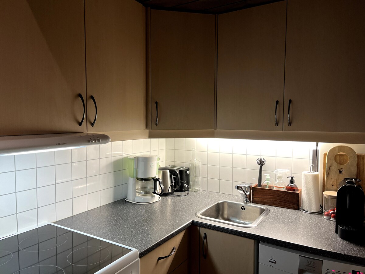 Well-equipped apartment in Highland Lodge Fjellandsby including garage space. Short distance to Geilo city center, ski resorts, cross country tracks and hiking areas. Family-friendly 2-bedroom apartment (one double bed and one bunk bed). Plenty of space for storage and hanging; shoes, outerwear, ski helmets, etc. Stall in the garage for storing, for example, skis and bikes. The kitchen is well equipped with e.g. toaster, waffle iron, coffee maker, mixer, wine glasses etc.