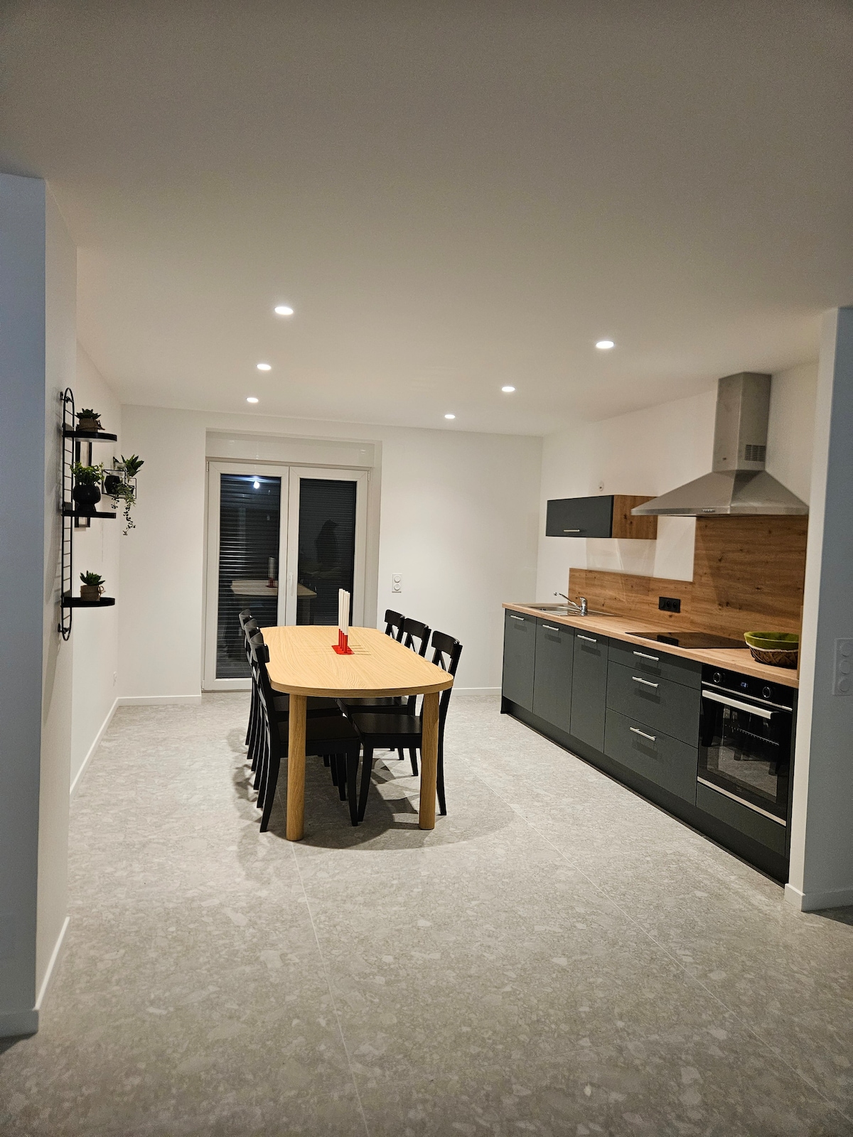 Bienvenue dans notre appartement de 34 m², situé au sous-sol de notre maison. Il comprend une grande pièce avec lit double, TV grand écran, rangements et accès direct à une petite terrasse privée. La cuisine est séparée et entièrement équipée. Un couloir mène à la salle de douche avec WC. Nous vivons juste au-dessus avec nos deux jeunes enfants (3 ans et 1 an et demi). Il y a donc des bruits familiaux en journée. Heures calmes : 22h–6h. 🚴🏻♂️ Près de la piste cyclable 🅿️ Parking gratuit