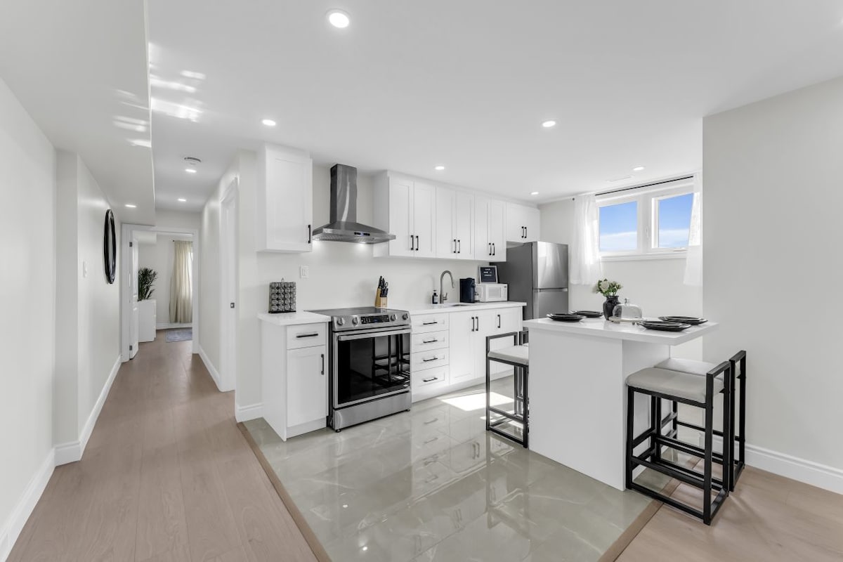 Enjoy a stylish and peaceful stay at this centrally located one-bedroom lower-level unit, perfect for both leisure and business travelers. With your private entrance, parking, and all the essentials, it’s your ideal home away from home. Features include a full kitchen, bathroom, internet, smart TV, one Queen and one sofa bed, and a functional workspace. Steps from FreshCo, Walmart, restaurants, and services. Minutes to Vaughan Mills, Canada’s Wonderland, Cortellucci Hospital and transit.