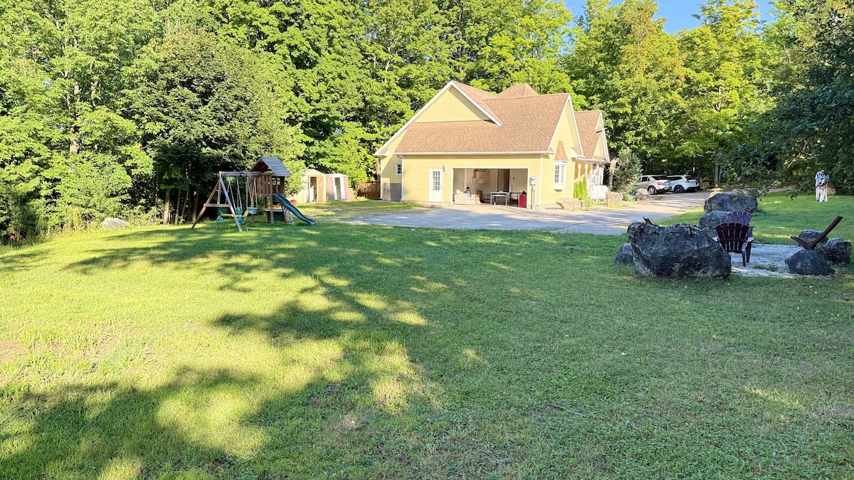 Take it easy at this unique and tranquil getaway. Located steps from Calerin Golf Course (350 m) and includes many amenities, such as: a BBQ, patio w/ dining area, private hot tub, acres of groomed trails, games galore, pool table, fire pit, comfy queen bed w/ separate heated bunkie with a second queen bed and more! Optional pull out available, please inquire within (fee may apply). 2 km or 5 mins, from the picturesque town of Erin. Lots of restaurants, shops, and plenty to do!