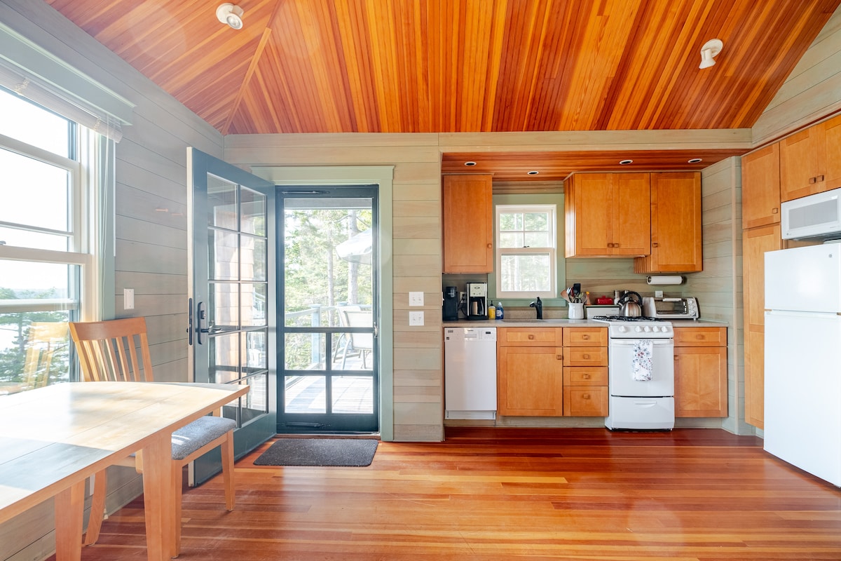 Featured in VOGUE and Maine Home + Design, this modern, handcrafted cabin offers calm Atlantic views, 150 feet of shoreline, and a private dock, perfect for morning coffee, launching a kayak, or watching seals, seabirds, and passing boats. Set among tall pines, it blends Nordic and Japanese influences in a space that is calm and composed. Interiors of wood, stone, lime plaster, and concrete form a grounded, quietly expressive, and sustainably built retreat. 1hr from Portland, but a world apart.