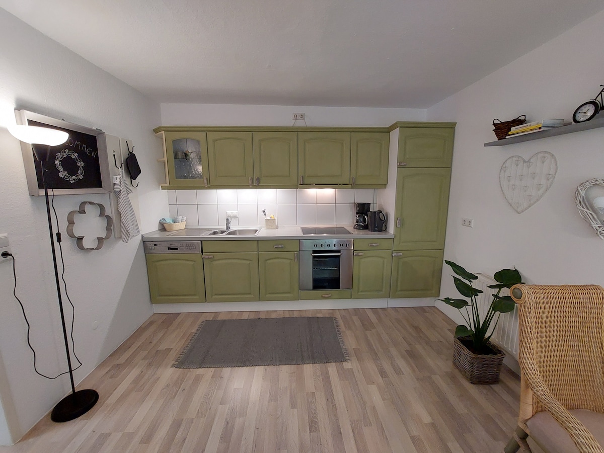 Charming, family-friendly apartment on a fully managed estate (field management)! Living room with fireplace, bedroom with double bed, spacious shower room with washing machine, pretty, fully equipped kitchen with dining area. The sofa in the living room can be pulled out to another double bed. A baby crib, baby bed and baby tub are provided. Small terrace area at your doorstep, garden to the rear, garden furniture available. Dogs are welcome by arrangement!