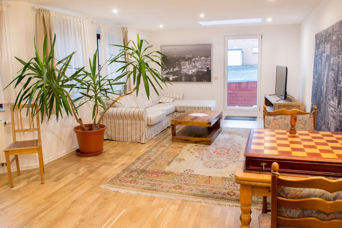 Stay in exclusive accommodation located in the heart of the city. -Designer furniture (Saba Italia, Perdali and more..) -Box spring bed from cocoon luxury beds, bed size: 160 x 200 cm, satin bed linen, bedding like in luxury hotels -comfortable sofa, smart TV -own dining area and desk -fully equipped kitchen -Access to the house and apartment using a PIN with advance online check-in -Washing machines and dryers in the basement via WeWash -weekly cleaning