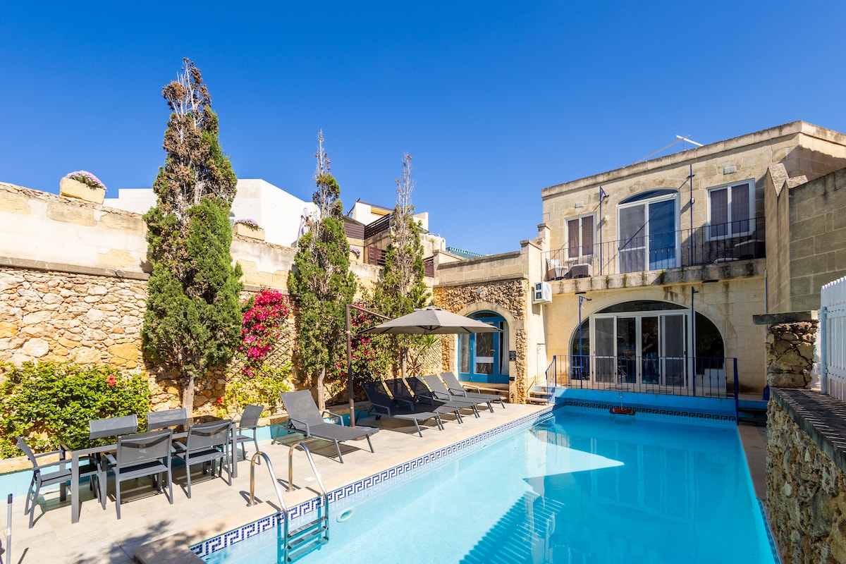 House of Character renovated to modern standards with pool and deck/bbq area. The farmhouse is equipped with Airconditioning units (pay by consumption) which can also be used for heating if needed. Perfect spot to explore and enjoy both the islands of Gozo/Comino and Malta and return to the house for a relaxing evening.