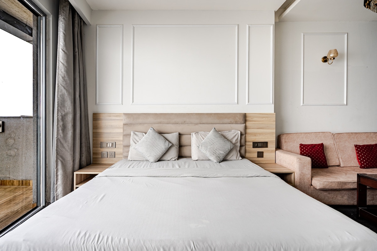 Float above the city at this peaceful, high-rise sanctuary with panoramic views of the Yamuna River and skyline. Whether you're on a romantic escape, work trip, or staycation, Cloud 33 is designed for both comfort and style. ✔ Prime Location – Only 100m from the metro for easy city access ✔ Scenic Views – Private balcony with river + skyline sunsets ✔ Ideal for Couples & Professionals – Cozy, modern, fully-equipped