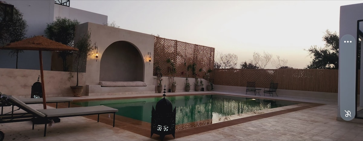 Welcome to our cozy Beldi villa, only a few minutes from Essaouira Enjoy a quiet setting in the countryside surrounded by greenery, ideal for relaxing as a couple or with the family. The villa has 2 spacious bedrooms, bright living room, equipped kitchen and private pool. Each space has been designed to offer wellness and privacy. I will be delighted to welcome you personally and help you discover Your comfort and satisfaction are my priority