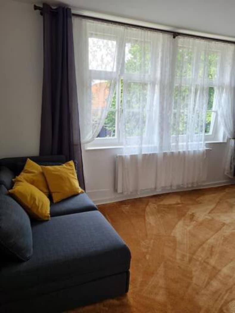 Newly renovated, 50 m² apartment in a quiet location – one of five accommodations in the house. The apartment is on the ground floor and is ideal for up to 3 guests. Bedroom with two single beds, cozy sofa bed in the living area. Fully equipped kitchen with dishwasher, large TV, free Wi-Fi. Washing machine/dryer in the basement. Subway in 8 min.Bus stop right outside the door. Lots of free parking. Cot/high chair on request. Contactless check-in.