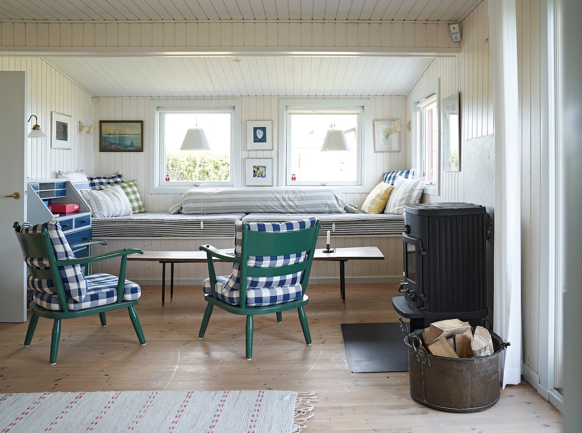 Wonderful vacation house situated a stone's throw from the water and the beach. Literally speaking! Here you can wake up to the gentle sound of the waves, almost calling your name, if you feel for a morning swim. On warm days, you can enjoy meals on the terrace most suitable to enjoy both the morning sun and also a beautiful view to the sunset. The high roof inside creates a good and spacious feeling making it easy for family and friends to enjoy life together during all times of the year.