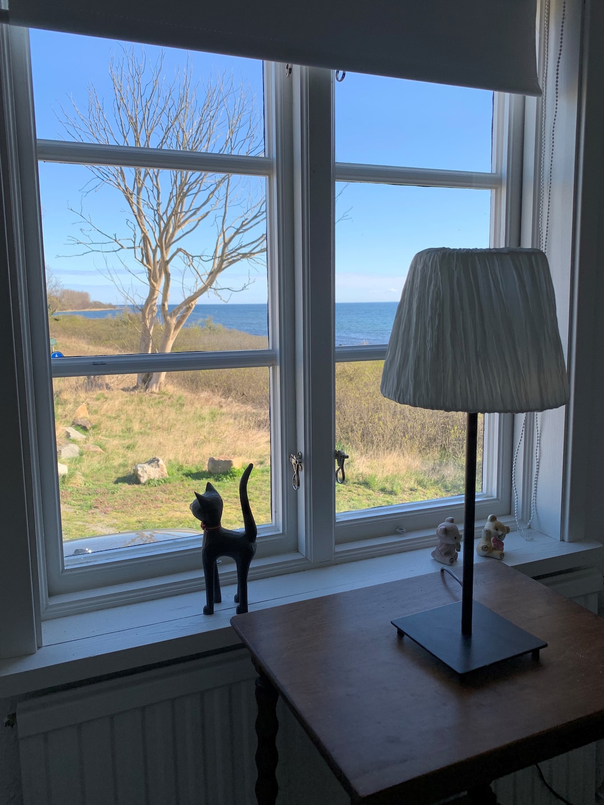 Panoramic view of the Baltic Sea, 15 meters to the beach with jetty and beach café. Fall asleep and wake up to the sound of waves. Two beds where you lie on the first floor and look out over the sea. Kitchenette with two stovetops, microwave, coffee maker, fridge and freezer. Small dining area, two armchairs, TV, Wi-Fi. Bathroom with shower and toilet. Large terrace, gas grill. The house is located in the middle of the coastal village of Svarte, about 6 km to Ystad, where you can easily drive by car or bike along the sea. Bus stop and train station with good public transport.