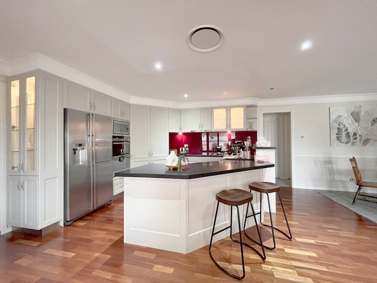 Prestigious Location Millionaire’s Home, Rare Nepean River Frontage - Spacious Hampton Country House 1960's. Large Living Areas, Home away from Home with complete set-out. Wifi 5 G, Smart TV, 5 Bedrooms, 7 Beds & Quality Matresses, Modern Full Kitchen, Luxury Outdoor Deck - BBQ Sunsets,Ducted Air-conditioning, Fully Fenced, 4 Car Parking, Lifestyle fitness situated on FUN -7 Mile River Walk. Brilliant location to all Tourist Favourites, Motorways, Blue Mountains, Trendy Cafes, Family - Work Stay