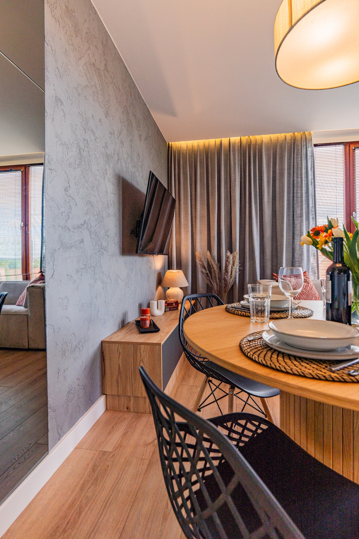 Scandinavian space with a green look that will comfort your senses is ready to host you in Wroclaw. We offer you modern, full of light, freshly renovated studio. Apartment is located in Nadodrze district, 5 minutes walking from a historic part of the city - Ostrow Tumski. To the city center (rynek) it's just 15 minutes walk or 3 tram stops. In the neighborhood you’ll find shops, restaurants and parks. There’s a great connection with the rest of the city by tram or bus. Free parking vis-a-vis.