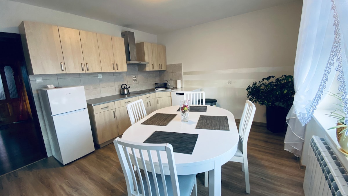 An apartment entirely for guests, with Wi-Fi, at an affordable price, with a beautiful view of the Pieniny panorama, from Jarmuta through Palenica to Bryjarka. Close to hiking trails, Dworek Gościnny, Dietl Market, Palenica, Grajcarek and Dunajec. The apartment is located on the third floor, has three separate bedrooms, a bathroom, a toilet, a kitchen and a spacious living room with a balcony. Free parking spaces and a well-stocked shop nearby. A great base for any destination.