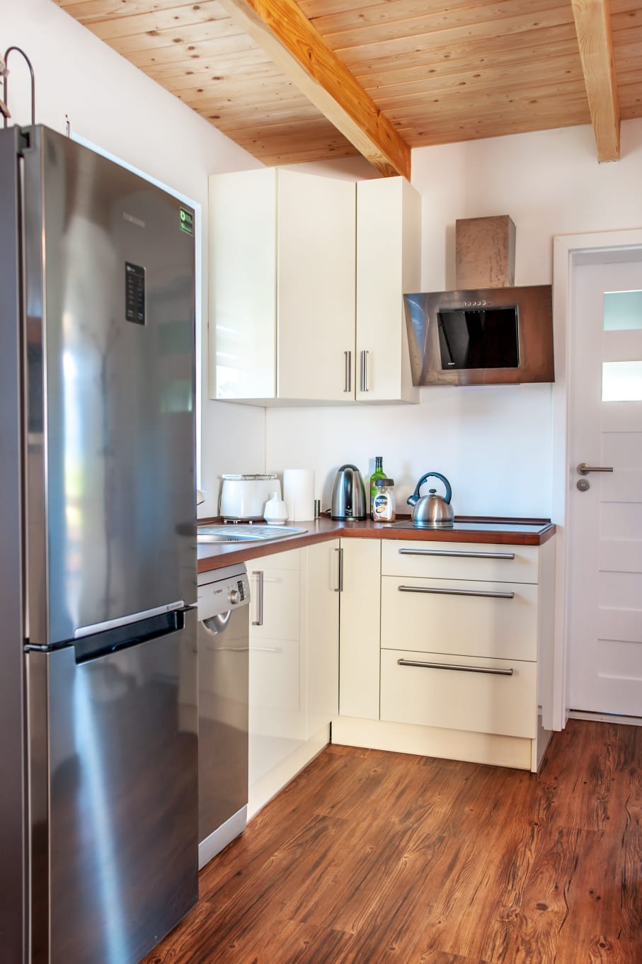 This holiday home with a private sauna, located close to Świnoujście, is perfect for families or friends with their pets. The house is located in a quiet area on the island of Wolin, close to the most beautiful wild beaches with wonderful cliffs, several lakes, cycling and walking routes and a golf course. It is a great base for other seaside attractions nearby. At the same time, we have peace and quiet on the spot, the sunset admired from the terrace and the stars looking into the eyes.