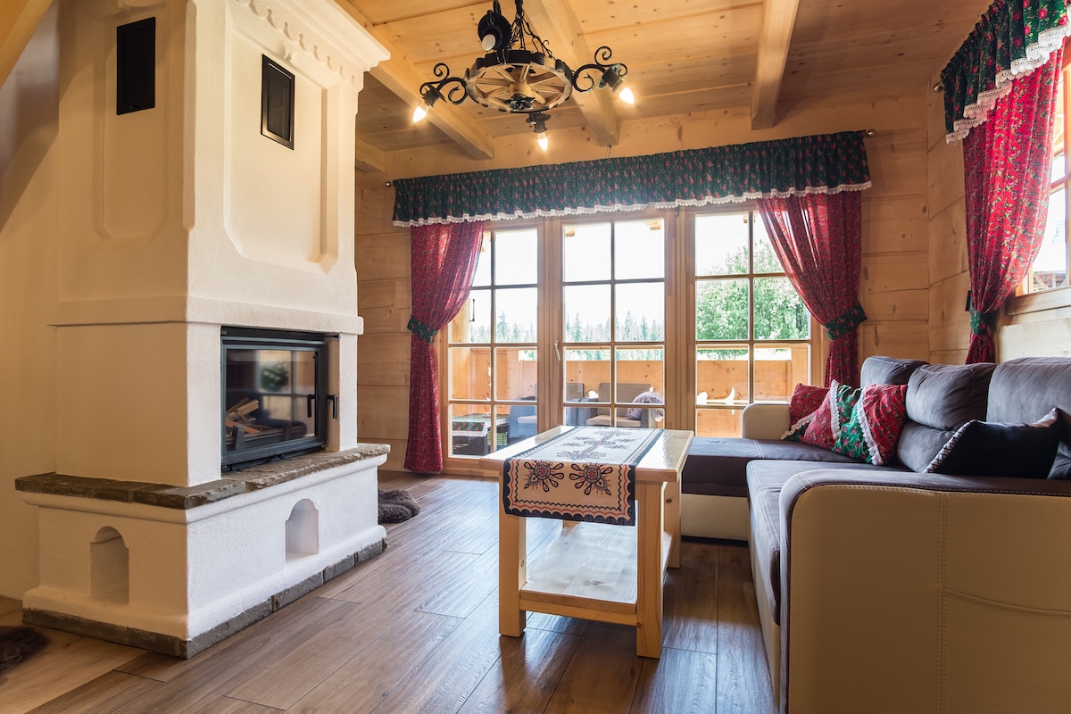 One-level apartment (100 m2) located in a wooden house at an altitude of 1050 above sea level!!! The entrance is separate. The apartment has a large terrace, we provide deckchairs. The view of the mountains "enters" the living room:) You can park your car on the property. The sauna and fireplace are free ,the 2x jacuzzi ( wood hot tub) paid extra. You can reach Gubałówka on foot(1 hour) and go by ropeway to Krupówki (4 minutes). Surroundings: hiking and cycling routes, ski slops!