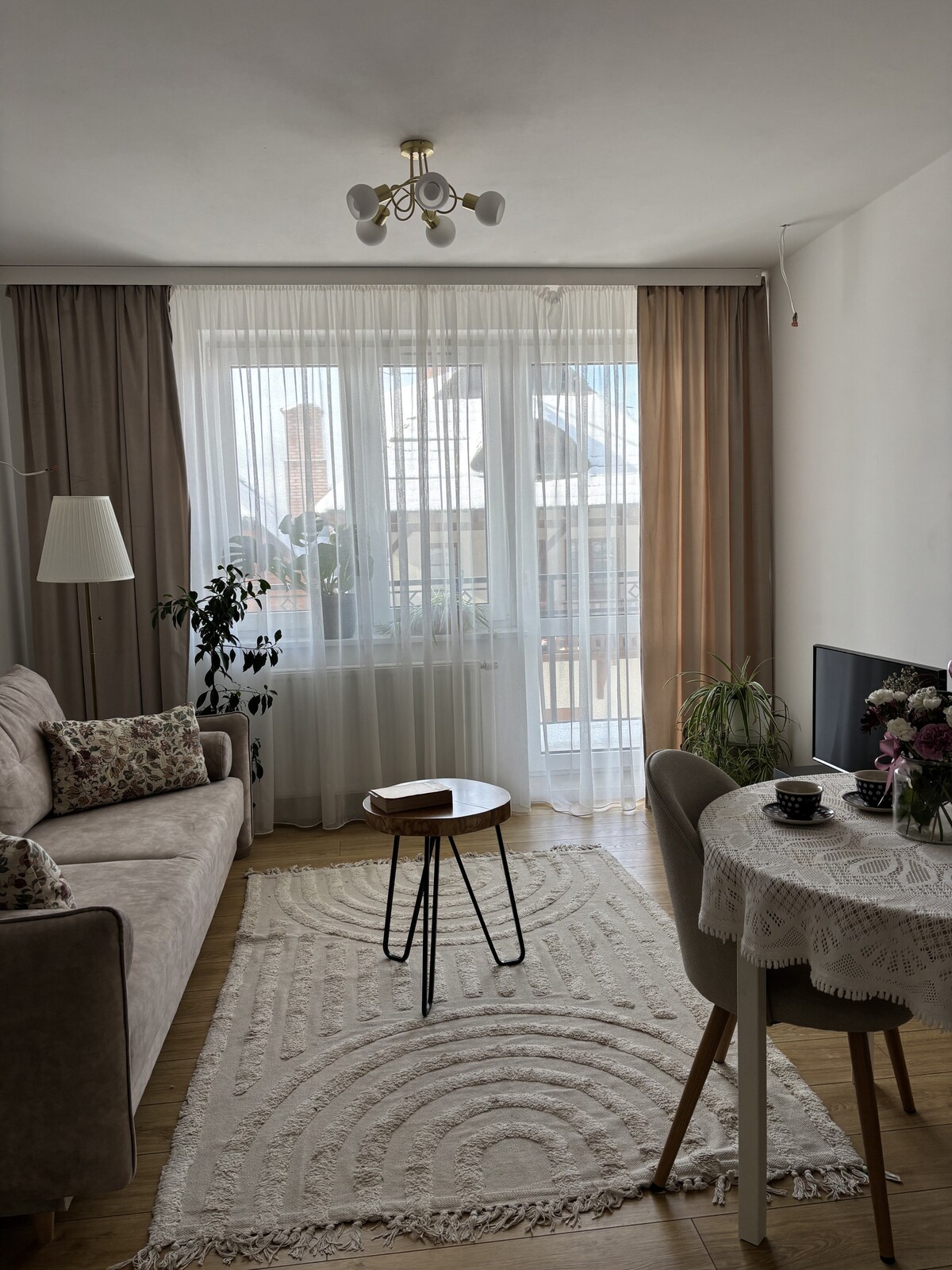 The apartment is located in Biłgoraj, on the picturesque Roztocze. It has a bedroom with a large double bed, a desk and a spacious built-in wardrobe. Two additional large built-in wardrobes are located at the entrance. It has a balcony with a set of furniture. It is fully equipped with, among others: - a kitchenette with a dishwasher, fridge, oven, coffee machine and necessary kitchen accessories, a set of dishes and cutlery - 60'' TV and high-end sound system - washing machine, clothes dryer.