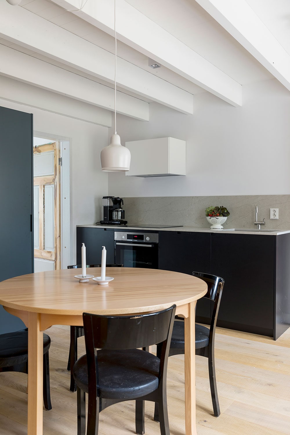 This is a bit like staying in a boat - a common comment we've received! The studio is relatively newly built, dining area for six, full kitchen, bathroom with washing machine and two bedrooms with a clear marine feel in New England style. The floor plan is open but the bedroom with the double bed still has some privacy. Behind a massive teak door from a Simrishamn ship is a sleeping alcove with four single beds with drapes to pull. The beds have reading lamps and electrical outlets for charging. Electric vehicle charging. Sauna and pool.